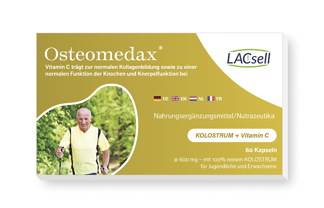 Bis ca. 35 Jahre werden unsere Knochen und Knochenmasse auf natürliche Weise den wechselnden Anforderungen angepasst. Danach überwiegt der allmähliche Knochenabbau und beschleunigt sich im Alter. Dieser Prozess kann durch Mineralstoffverlust, Bewegungsmangel und hormonelle Einflüsse noch beschleunigt werden. Durch den Verzehr von Kolostrum mit seinen Wirkstoffbestandteilen als Pulver, in Verbindung mit Vitamin C und Kalzium gelangen diese Mikronährstoffe über das Bindegewebe in die Zellen und beeinflussen positiv den Alterungsprozess in Verbindung mit Vitamin C, Kalzium, Glucosaminsulfat und Chondrointinsulfat.